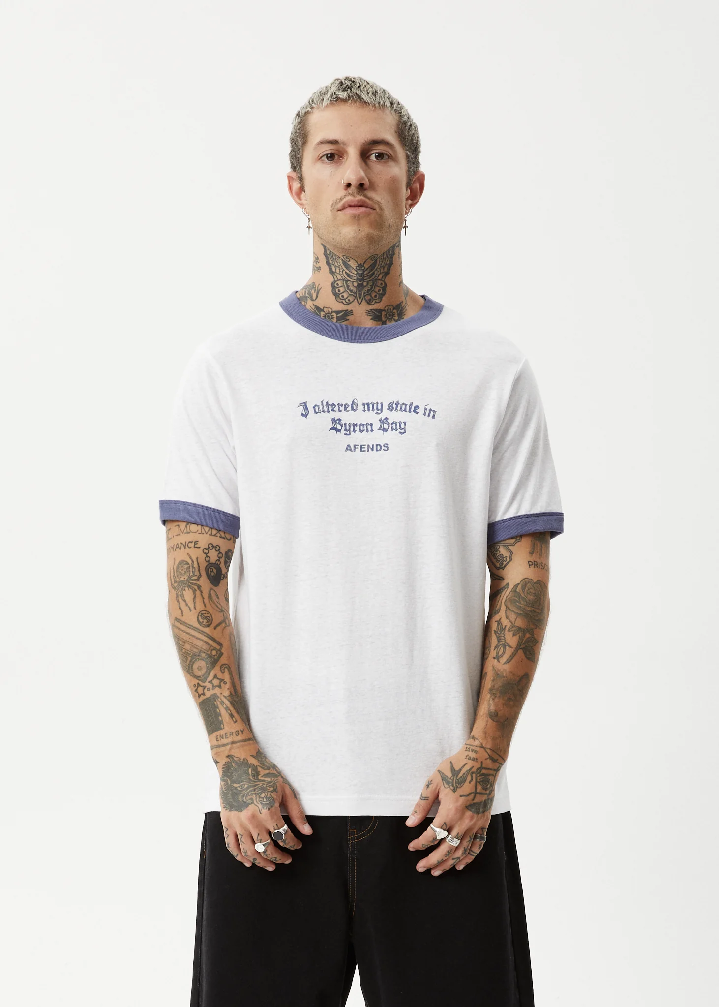 AFENDS Mens Byron Trip - Ringer Tee - White