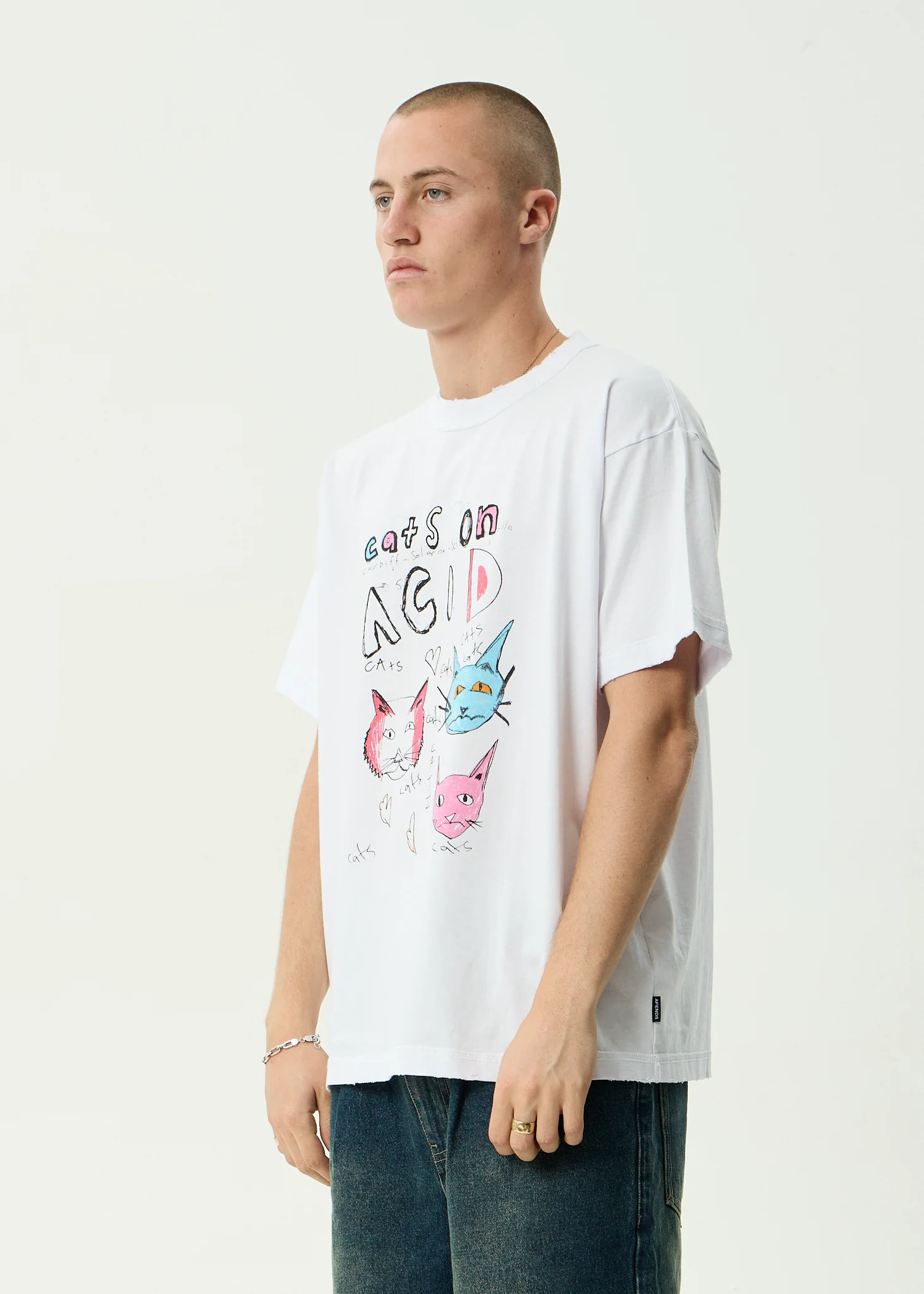 AFENDS Mens Cats On Acid - Recycled Heavyweight Boxy Tee - White