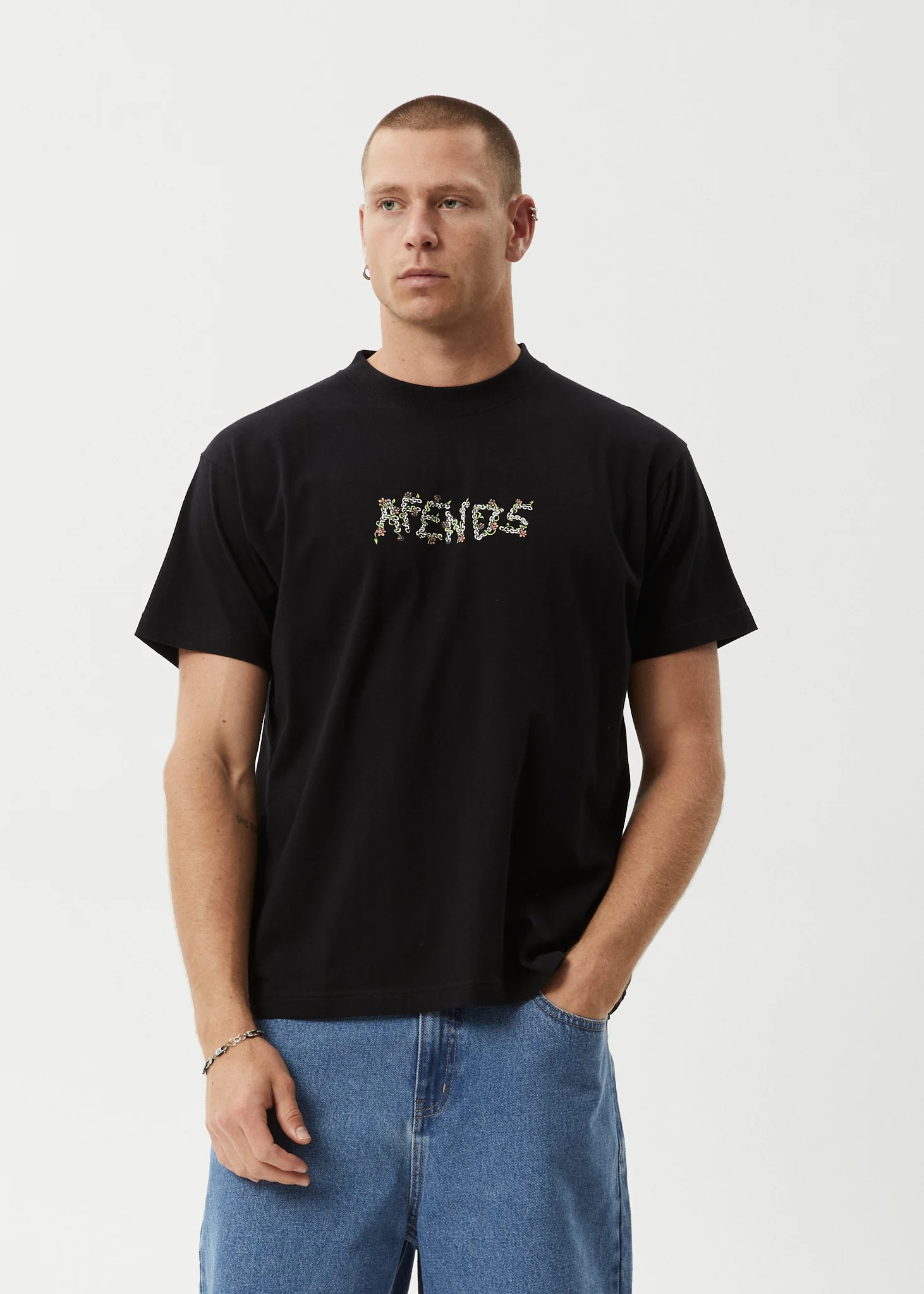 AFENDS Mens Daisy Chain - Boxy Tee - Black