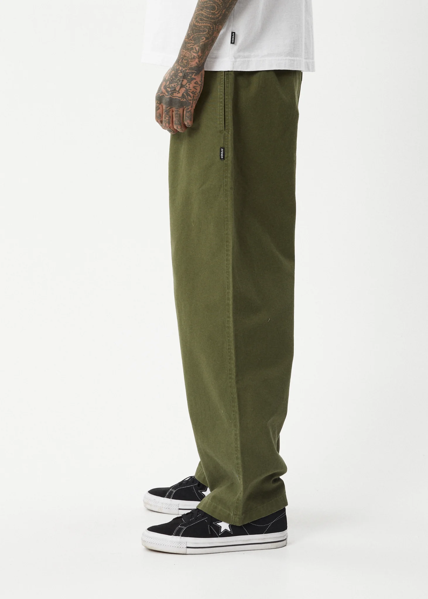 AFENDS Mens Ninety Eights - Baggy Elastic Waist Pant - Military