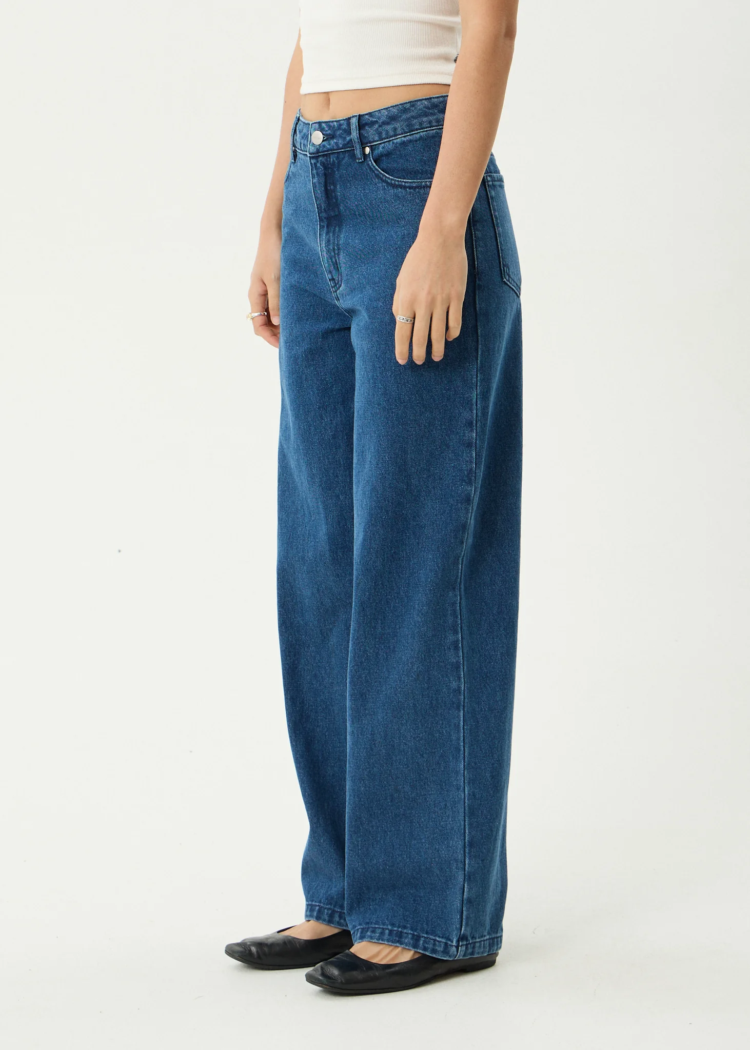 AFENDS Womens Bella - Denim Wide Leg Baggy Jean - Authentic Blue